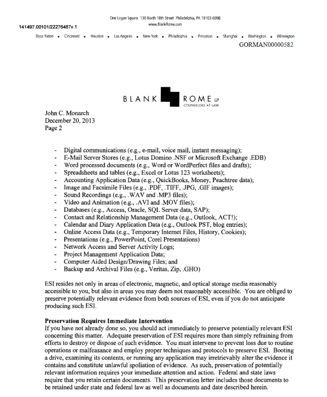 Litigation would follow, including a countersuit filed by Monarch’s attorney/business partner Aaron Kelly that named Gorman’s wife, a homemaker that was never involved in Gorman’s business affairs. When Attorney Aaron Kelly was disqualified from the case, Kelly’s partner, Daniel Warner, entered his appearance.