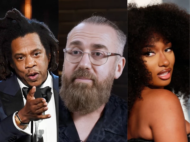 Jay-Z, DJ Vlad, and Megan Thee Stallion pictured in composite editorial image related to reporting on publicly circulated statements and ongoing legal controversy. Image credit: Composite of publicly available media photographs. Used strictly for news reporting, commentary, and analysis purposes under 17 U.S.C. §107 (Fair Use). This image is reproduced in a transformative, non-commercial editorial context directly connected to matters of public interest, legal reporting, and commentary. No endorsement is implied. All rights remain with the original copyright holders.