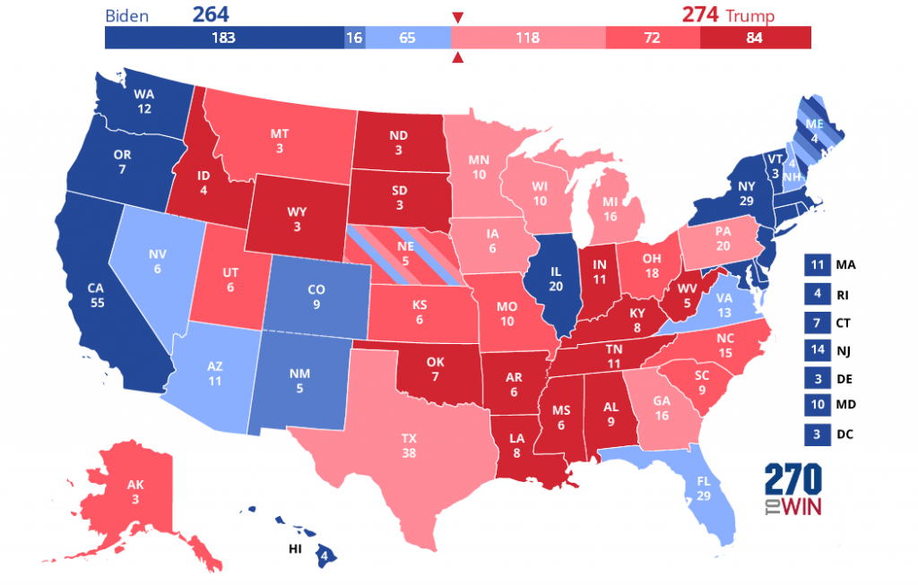 That would lift Trump to a narrow Electoral College victory of 274-264.